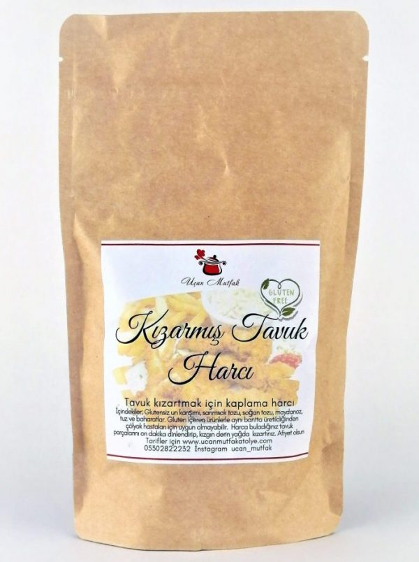 Dışarıda yediğiniz kızarmış tavukların harcında glütenli unlar kullanılmaktadır. Glütene karşı hassasiyeti olanlar, yedikten sonra rahatsızlık ve mutsuzluk hissederler. Buna karşın evde hazırlamak heyifli ve sağlıklıdır. Ne yediğinizi bilerek huzurla yersiniz. Uçan Mutfak Atölye, glütensiz unlardan ve özel baharat karışımlarıyla, katkısız olarak sizin için hazırladı.